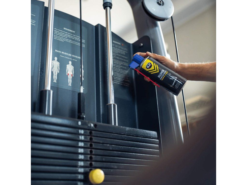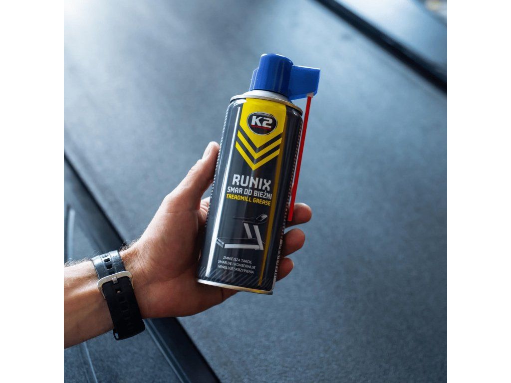 Perfektne spolupracuje s plastovými a kovovými komponentmi a chráni pred koróziou. Znižuje tendenciu bežeckého pásu prilepovať sa k bežeckej doske. Eliminuje vŕzganie, je bezfarebný, nezanecháva škvrny, bez zápachu a je vodeodolný. Pravidelné používanie znižuje trenie, a tým aj spotrebu energie zariadenia. Silikónové mazivo v spreji navyše zabraňuje deformácii a praskaniu plastových, gumených a kovových komponentov, čím predlžuje ich životnosť.