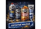 K2 KERAMICKÉ MAZIVO na skrutky a spoje ohrozené pôsobením vysokého tlaku a vysokých teplôt (až do 1200 °C). Je vhodné na použitie v brzdových systémoch vybavených ABS, ASR, ESP