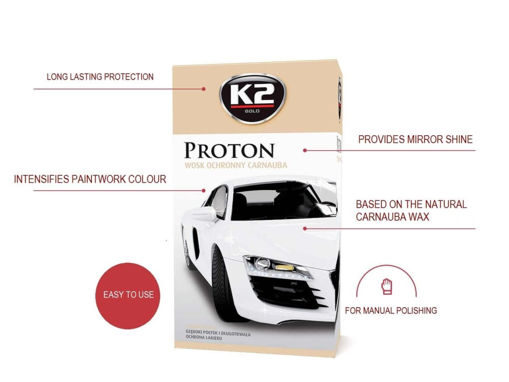 - Pred použitím produktu umyte a osušte lak. Pre dosiahnutie maximálnej trvanlivosti použite na odstránenie usadenín K2 Clay bar (L700) a na odmastenie laku K2 Klinet (L761).